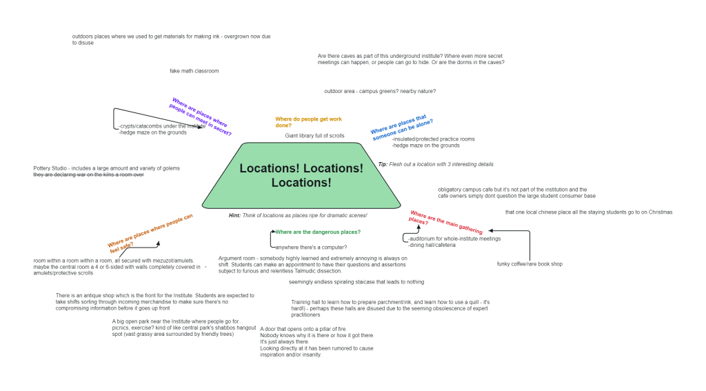 The following locations are suggestions. Feel free to come up with your own ideas instead.